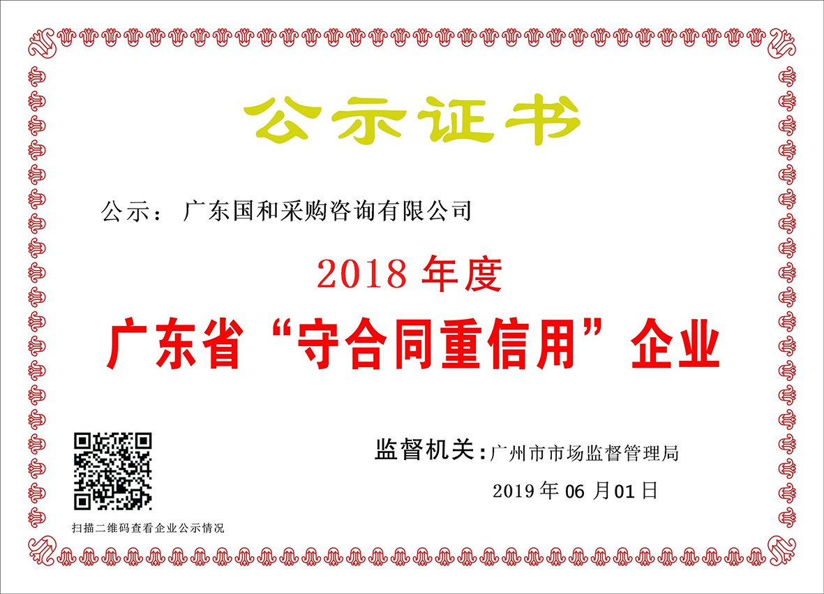 2018年度守合同重信用證書