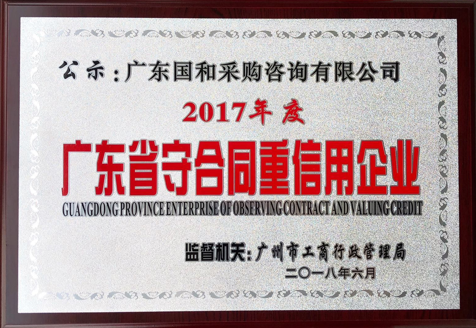 2017年度廣東省“守合同重信用”企業